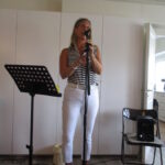 Vid vårt första månadsmöte kunde ordförande Christina hälsa åttiotalet medlemmar välkomna. Vi gästades av Helena Klavefors som framförde kända melodier med en personlig tolkning. Melodier – bland annat – från såväl Cornelis Vreesvijks som Bob Dylans repertoar. Det var högst njutbart att få lyssna till Helenas melodiska stämma. Då ju de flesta av oss återsågs efter sommaruppehållet så steg sorlet under kaffepausen. Men vi fick också information av Jan André från vårt bibliotek, som på ett lättsamt sätt berättade om höstens föreläsare. Informerade gjorde även föreningens funktionärer om kommande aktiviteter. Mötet avslutades som alltid med det populära lotteriet.