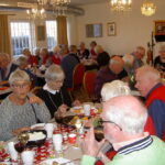 I väntan på nobelbanketten på TV senare på kvällen hade vi Aktiva Seniorer samlats på Kabelgatan för en traditionsenlig julavslutning. Mingel med glögg och pepparkakor serverades vid ankomsten. När klockan slog ett var vi över 100 personer samlade. Britt, Eva, Ann-Margret, Anna och Birgitta hade lagt stor möda på att planera allt inför festen. Rose-Marie hade skapat fantastiska julgrupper för dekoration av borden. Allt som krävs för trevlig samvaro var alltså på plats när kalaset började. I Christinas öppningsanförande informerades vi om diverse viktigheter, två nya medlemmar välkomnades också. Hon avslutade med att önska oss alla ”bon appetit”. Maten smakade utmärkt och kryddades med allsköns sång och musik av BOK (Björn, Olle och Kjell). Lottdragning avslutade en lyckad fest.